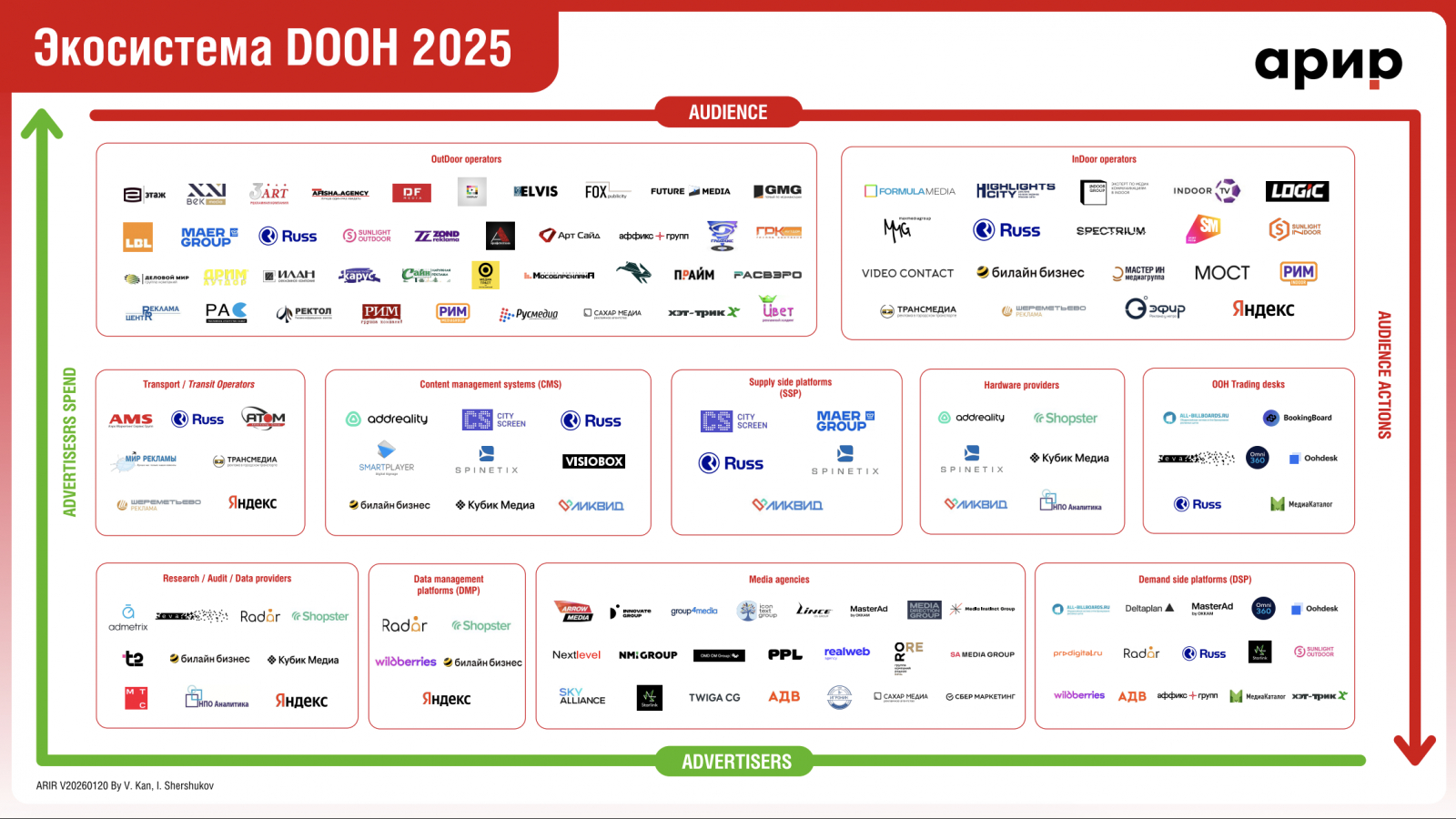 Комитет по DOOH АРИР представил актуальный срез ключевых игроков экосистемы цифровой наружной рекламы в России: https://interactivead.ru/wp-content/uploads/2026/01/ekosistema-dooh-2025-.pdf